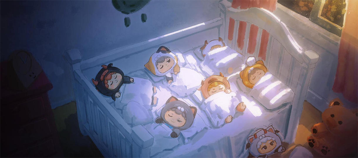 The clock struck three, and the nursery lights dimmed to a soft glow. That’s when they woke—seven little figures on the shelf, their eyes glinting like scattered stars.
